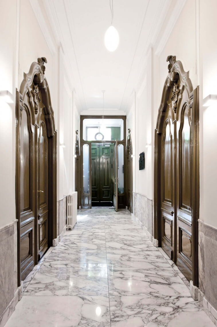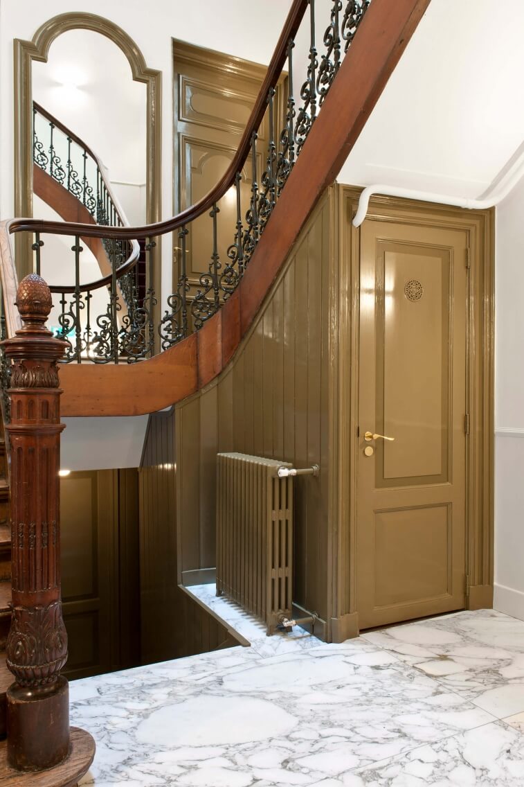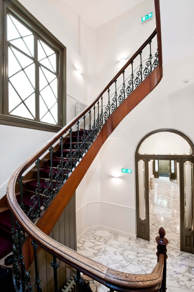 Het project betreft de restauratie van een monumentaal trappenhuis in een grachtenpand te Amsterdam, alle onderdelen zijn voor zover mogelijk teruggebracht in originele staat. Het originele kleurenpalet is als onderlegger gebruikt voor de huidige kleurstellingen. Helaas was de te voorschijngekomen oorspronkelijke marmeren vloer niet meer te herstellen, de nieuwe vloer is een afgeleide hiervan.